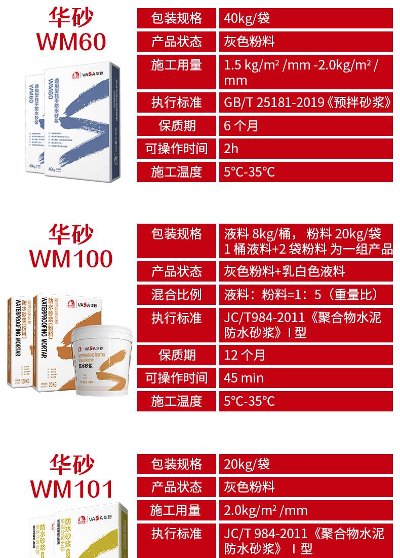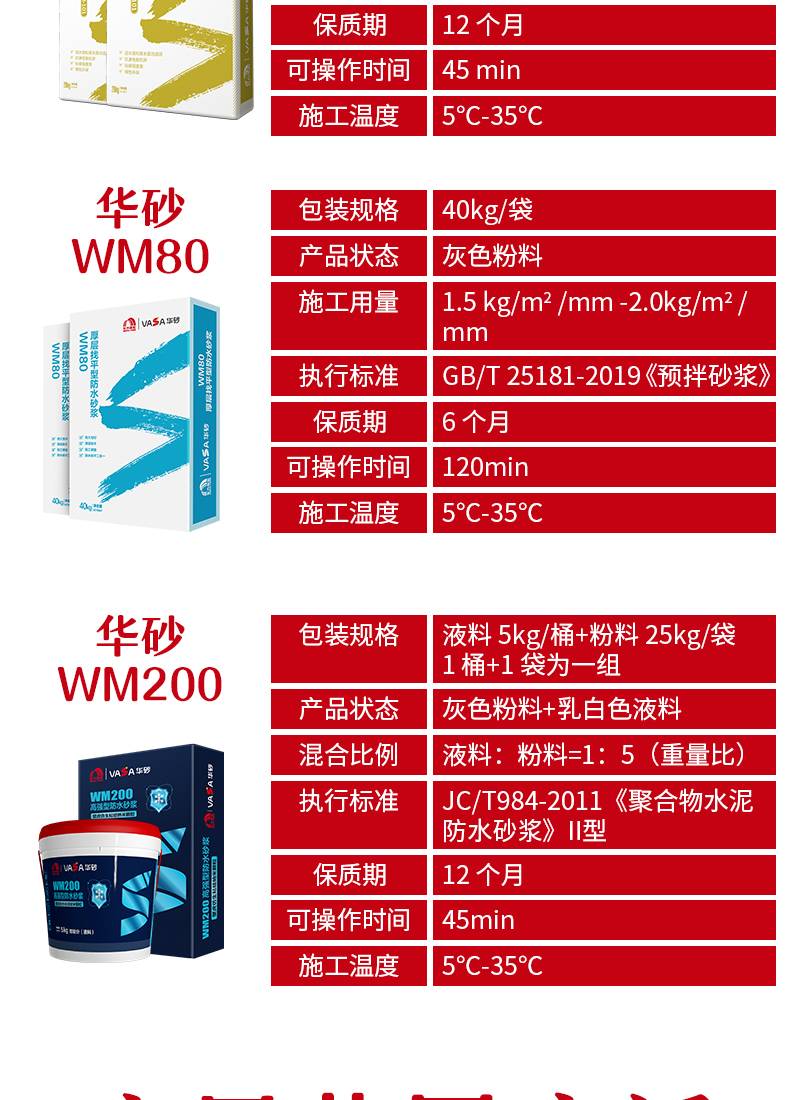 WM200防水砂浆耐候性强 墙面地面通用防水涂料 附着力强